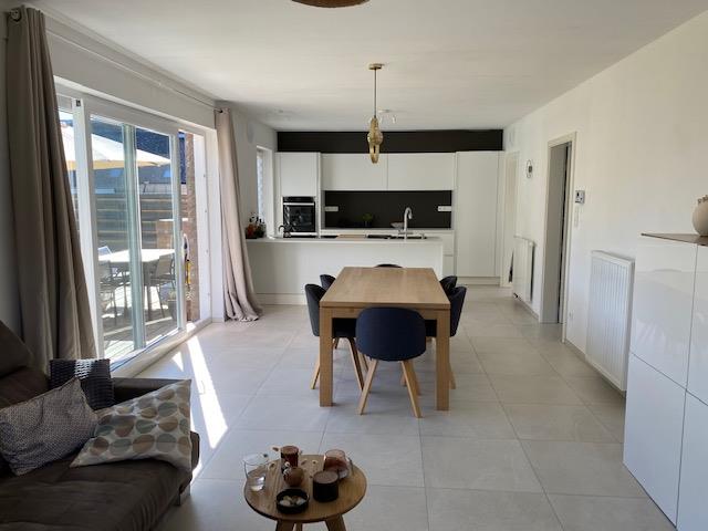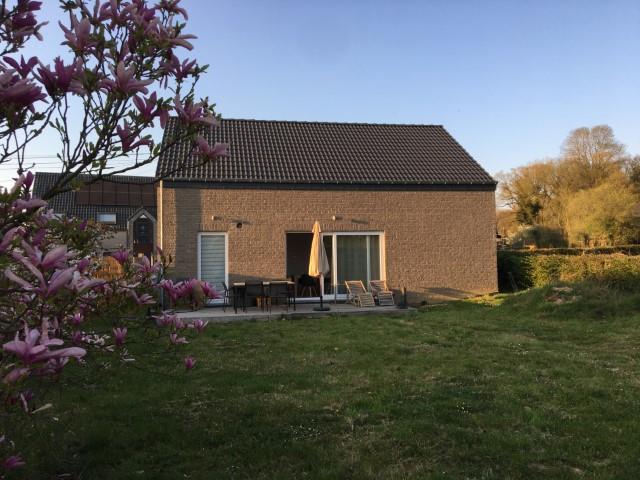 Cette superbe villa est située à Devant-Les-Bois, petit village de l'entité de Mettet, dans un endroit calme, à la campagne. Cette construction neuve de 2019 se compose, au rez: un hall d'entrée, une chambre avec au sol un plancher chêne massif, sa salle de douche et WC séparé, un spacieux living, très lumineux comprenant salon et salle à manger avec accès direct vers la terrasse, une cuisine américaine entièrement équipée avec aussi un accès vers le jardin, une buanderie avec accès direct vers l'extérieur. A l'étage un palier desservant 3 chambres et une salle de bain (bain, lavabo et wc). Cette maison de PEB B vous offre tout le confort tel que châssis double vitrage en PVC, chauffage central gaz avec une citerne enterrée de 2400L (consommation annuelle +/-1200 Eur), citerne d'eau de pluie de 5200L avec groupe hydrophore alimentant les WC - la machine à laver - un robinet extérieur, compteur électrique bi-horaire, VMC. Très beau jardin de 4 ares 99ca orienté plein Sud avec abris de jardin. A l'avant de la maison, facilité de parking avec 3 emplacements voiture. En résumé, cette maison a vraiment tout pour vous plaire...Alors n'hésitez plus venez la découvrir ! PRIX NEGOCIABLE. Pour toute information ou visite 071/72.91.93