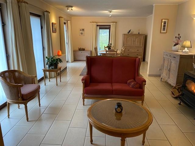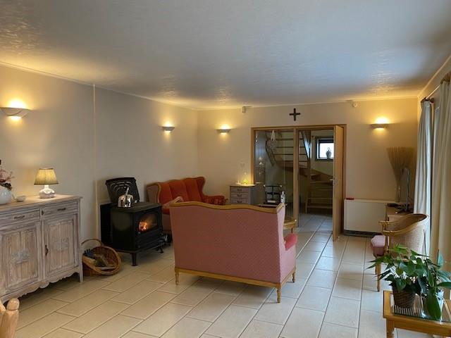 OPTION - OPTION - OPTION Située dans la vallée de la Molignée, à l'entrée du beau village de Maredret, spacieuse villa de +/- 205m2 habitable, érigée sur un terrain de 12ares 70ca. Ce bien vous séduira par ses beaux volumes et par sa situation remplie de plénitude. Le bien se compose d'un hall d'entrée avec WC, un spacieux living avec un poêle à bois, une cuisine équipée type américaine donnant sur une agréable véranda équipée de stores électrique, une buanderie, un garage 1 voiture. A l'étage, un hall de nuit desservant 4 chambres, un WC et une salle de douche. Il existe des vides ventilés sous la maison avec accès. La maison dispose du chauffage à bois (poêle) et du chauffage électrique avec un compteur spécial nuit+ bi-horaire, d'une citerne d'eau de pluie de 10m3 alimentant les chasses d'eau, deux boilers électrique, des châssis double vitrage anti-effraction avec moustiquaire. La construction date de 2000-2002. Elle a reçu un PEB de lettre C et l'installation électrique est conforme. Le revenu cadastral est de 715 Eur. Vous recherchez un bien en parfait état dans lequel vous devez juste déposer vos meubles...alors ce bien est pour vous !!! N'hésitez pas à nous contacter pour une visite www.Cidimmo.be 071/72.91.93 Prix sous réserve d'acceptation des propriétaires. Annonce informative et non contractuelle.